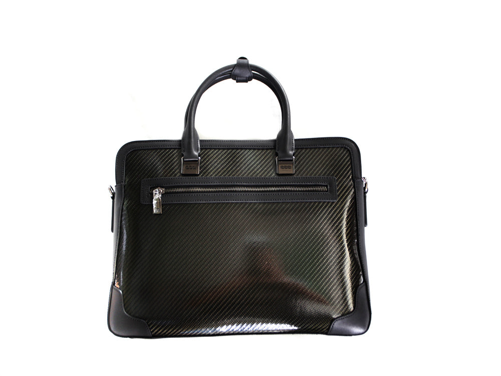 Typische Merkmale dieser Aktentasche aus Carbon: