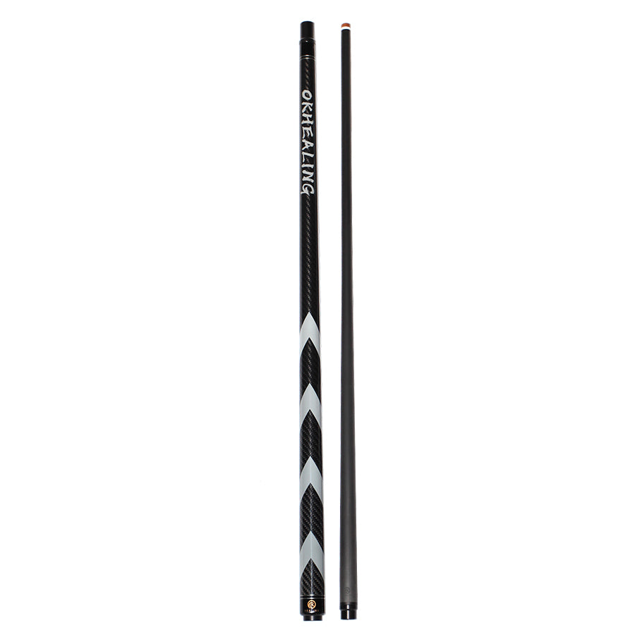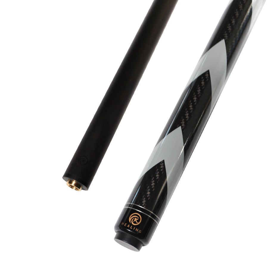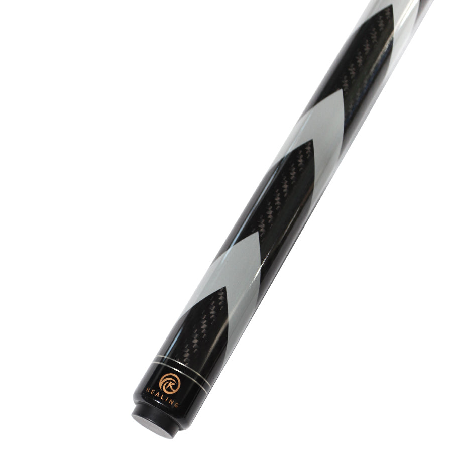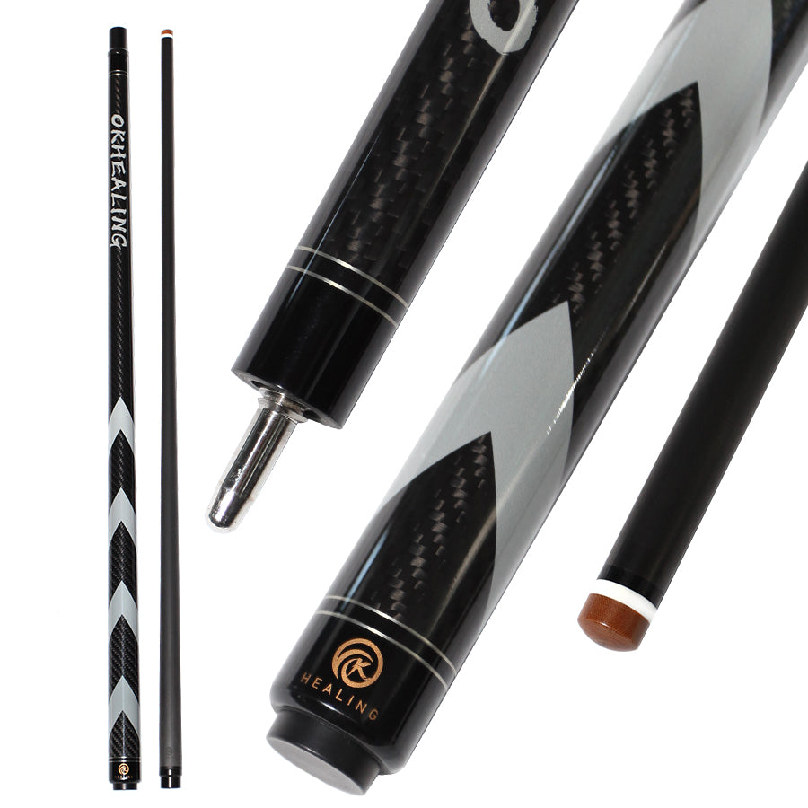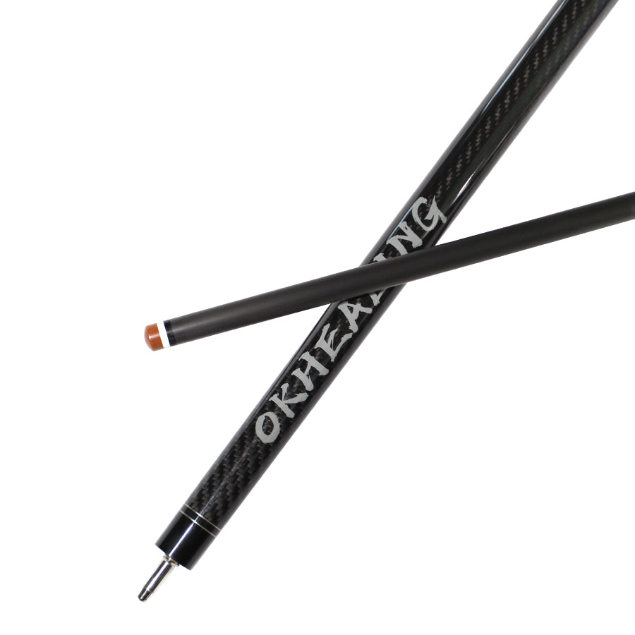 1. Klassisches, schlichtes Design: Dieser schwarze Break-Queue aus 3K-Carbon zeichnet sich durch eine Köperbindung für erhöhte Festigkeit und ein edles, technisches Aussehen aus.