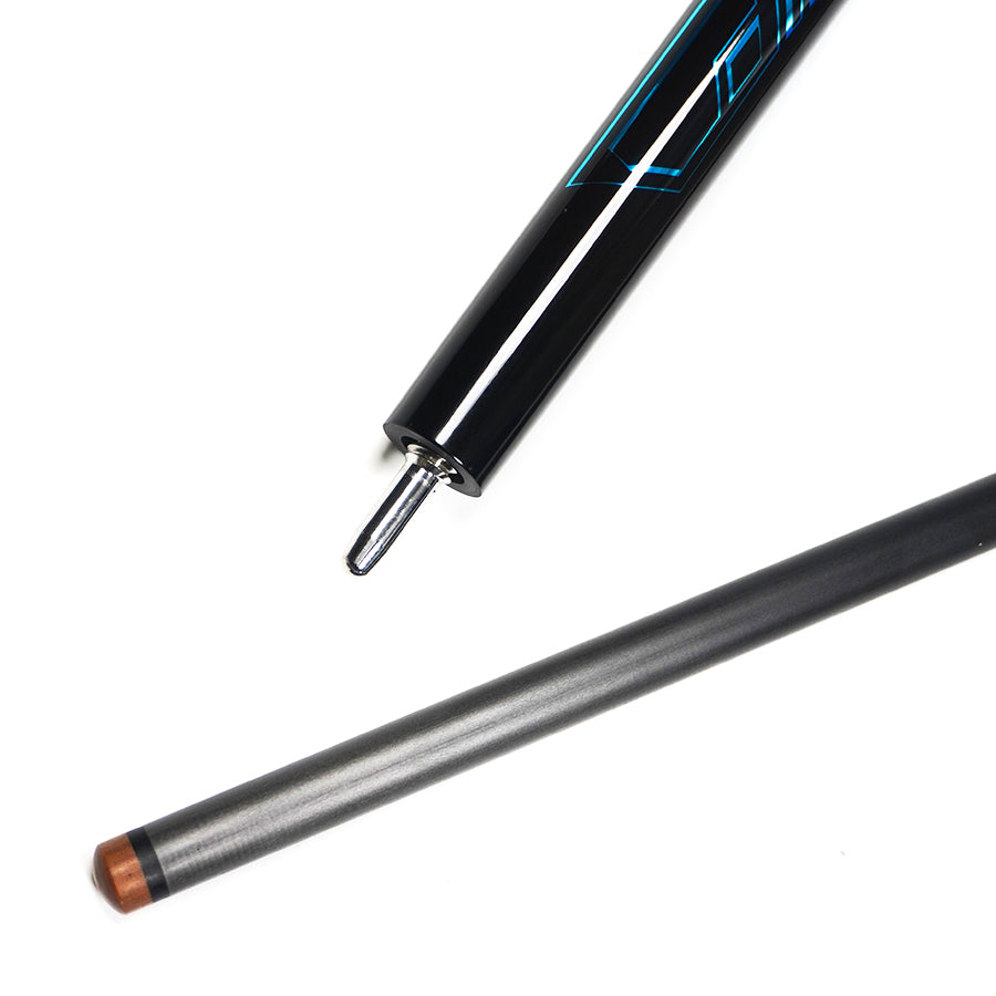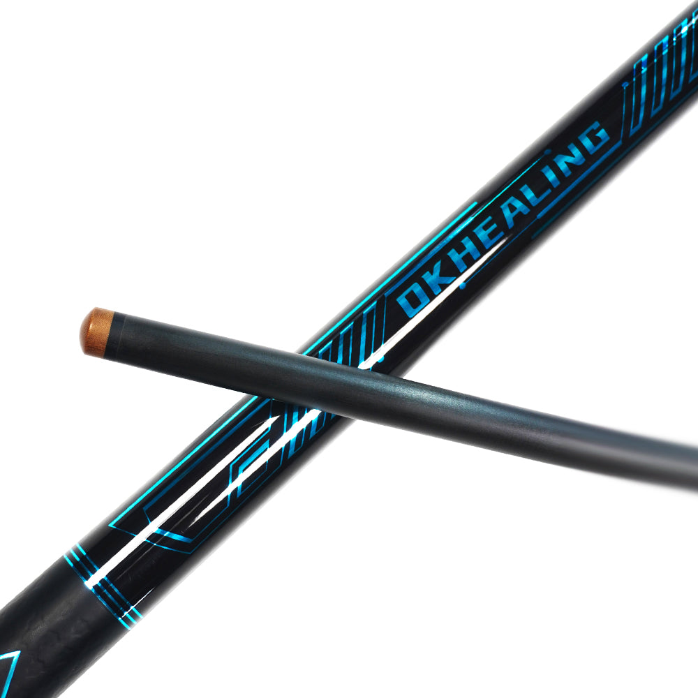 1. Schaft aus Carbon-Technologie: Verfügt über eine plattierte Oberfläche mit markanten blauen geometrischen Mustern , UV-gedruckten Details und einem rutschfesten Griff für maximale Genauigkeit.