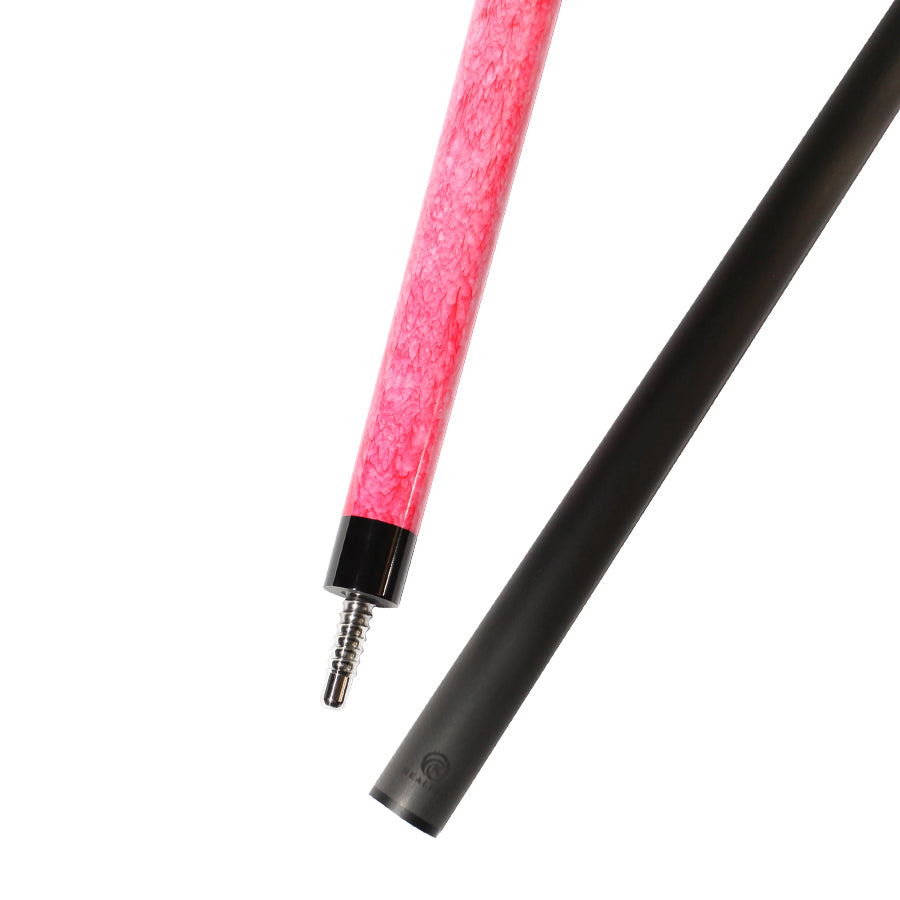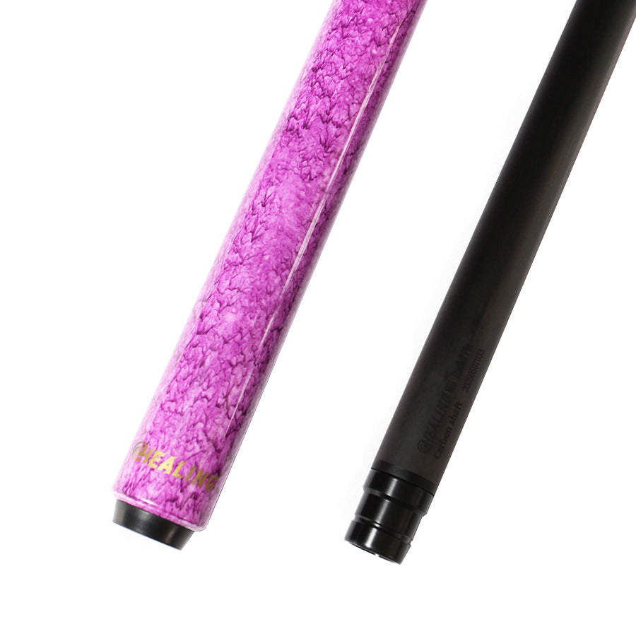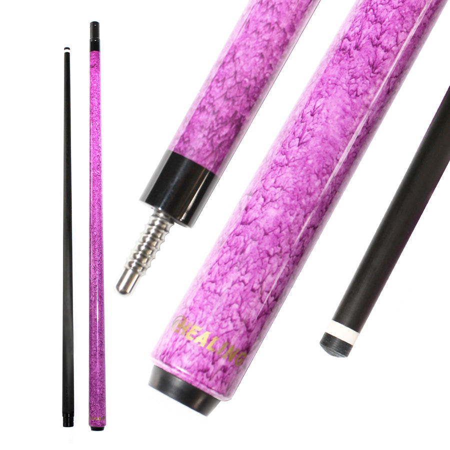 2. Glänzendes Queue-Unterteil in Fließsandoptik: Verfügt über ein glänzendes Fließsanddesign, das sowohl auf als auch abseits des Tisches auffällt, erhältlich in zwei atemberaubenden Farben – leuchtendem Rot und elegantem Lila.