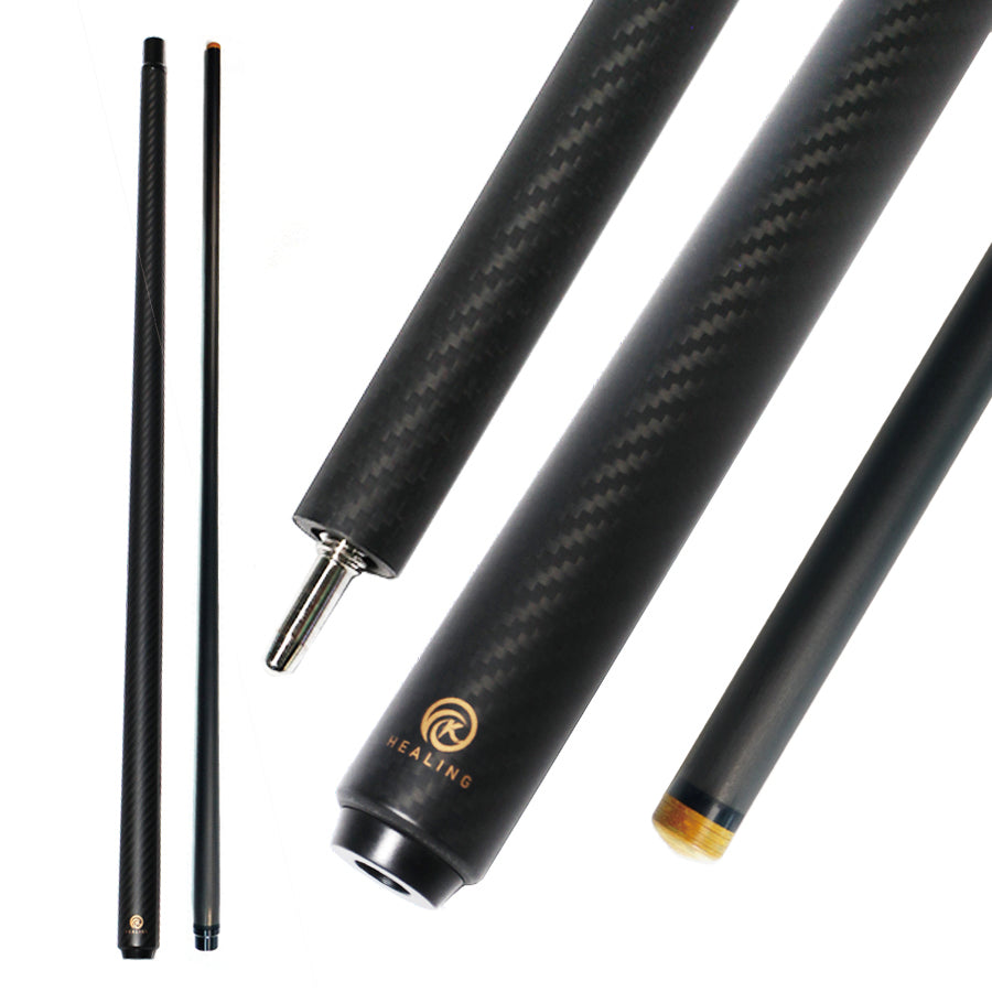 1. Klassisch schlichtes Design: Dieser schwarze Snooker-Queue aus 3K-Carbon zeichnet sich durch ein mattes Köpergewebe-Design aus, das für erhöhte Stabilität und ein edles, technisches Aussehen sorgt.
