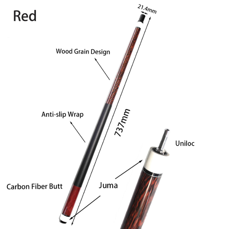 1. Queue mit geringer Ablenkung : Der Carbon-Queuekopf ermöglicht eine natürlichere und präzisere Ziellinie, insbesondere bei Seitwärtsdrall. Er minimiert die Ablenkung des Spielballs und erfordert somit weniger Korrekturen beim Zielen.