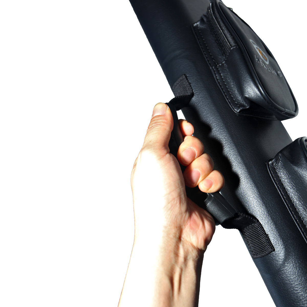 Schwarzes Hartschalen-Queue-Etui für zweiteilige Queues mit Schultergurt