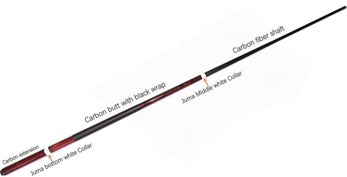 1. Geringe Ablenkung : Der Queue aus Kohlefaser reduziert die Masse im vorderen Bereich, was zu einer geringeren Ablenkung und einer präziseren Kontrolle über Stoßrichtung und Spin führt.