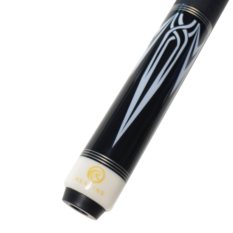 2. Reaktionsschnelles Queue-Griffstück: Verfügt über ein Hightech-Holzgriffstück für ein klassisches, reaktionsschnelles Spielgefühl , kombiniert mit einer weißen PU-Ummantelung im Eidechsenmuster für sicheren, rutschfesten Halt.
