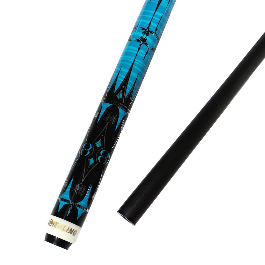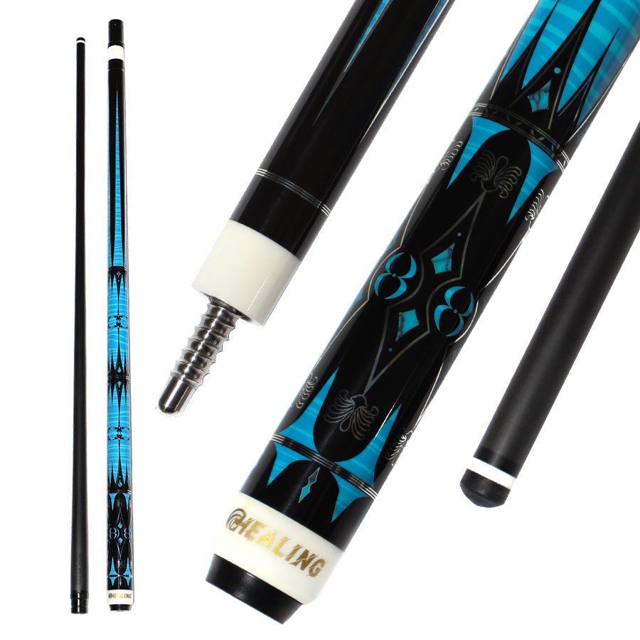2.UV & Plated Cue Butt: Combines a durable electroplated finish with vibrant UV-printed geometric graphics for a sleek, polished look.