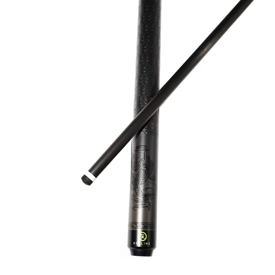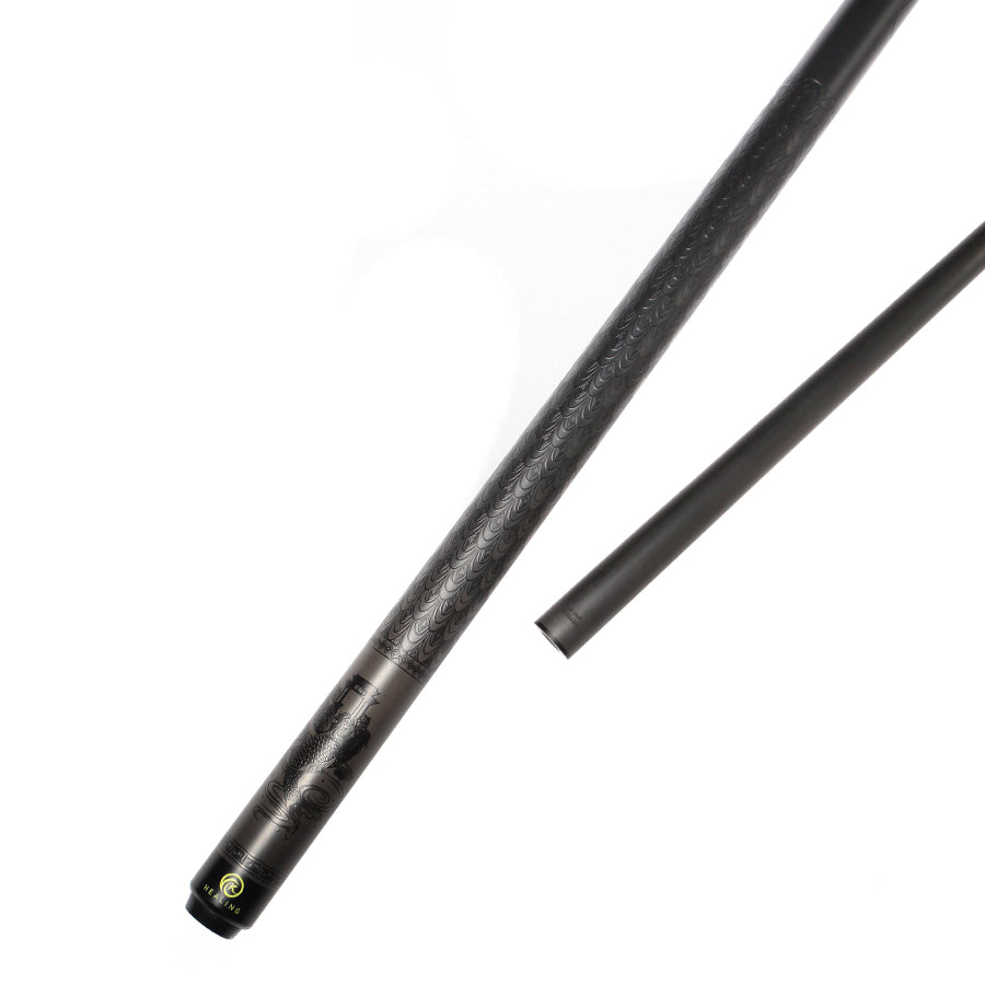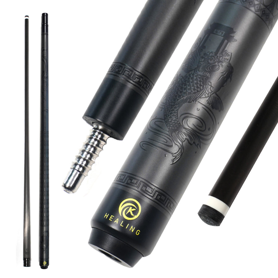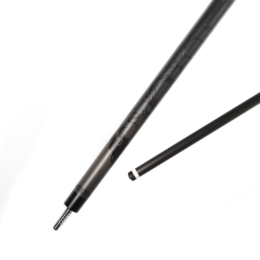 2.Carbon Fiber Cue Butt with a UD matte finish, featuring UV-printed, textured designs of a leaping carp and dragon motif that create a subtle 3D feel, symbolizing strength and success.