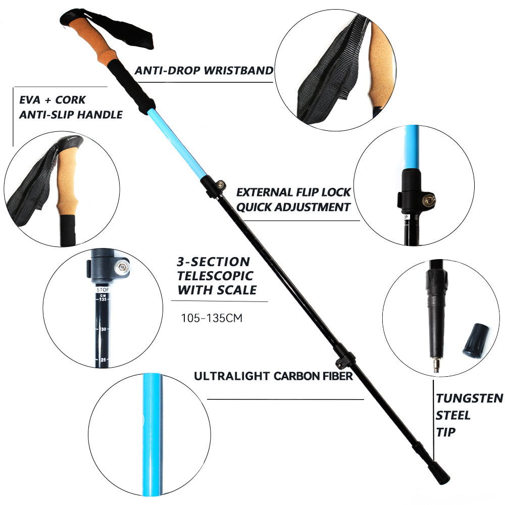 1.Lightweight: Ultralight trekking poles, easy to carry, and ideal for long-distance hikes.